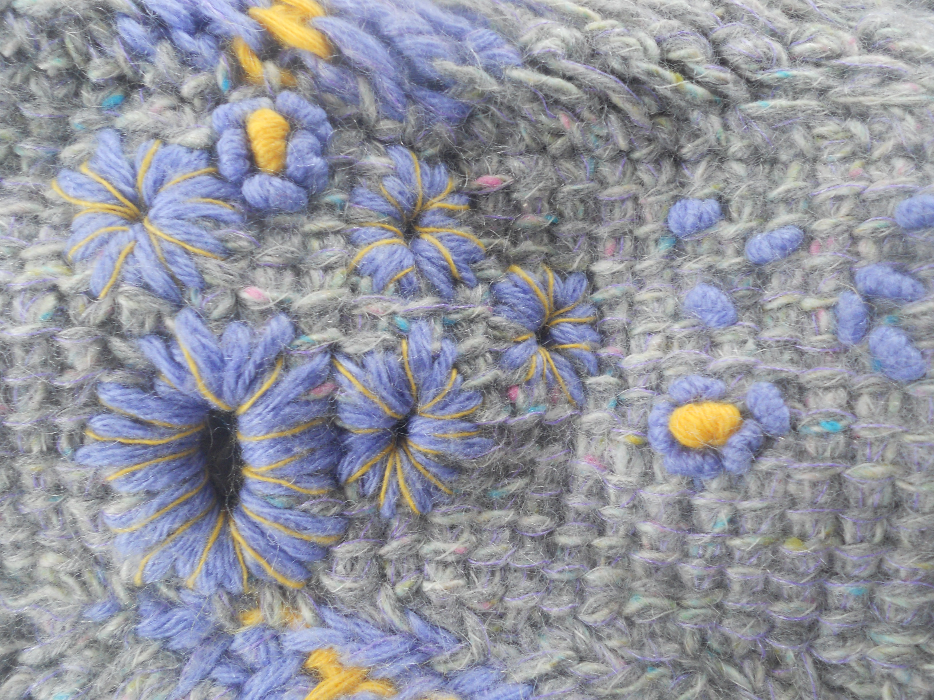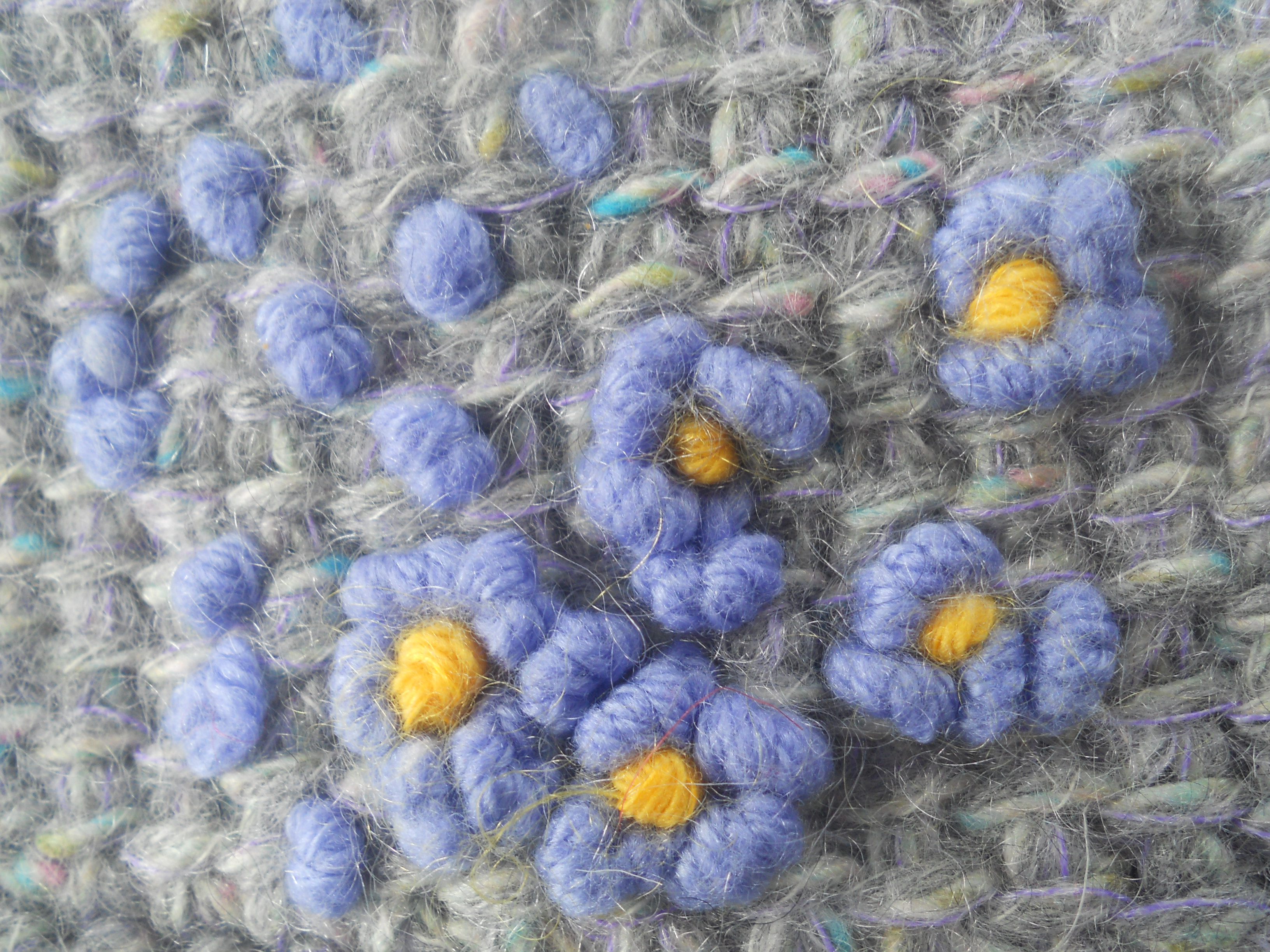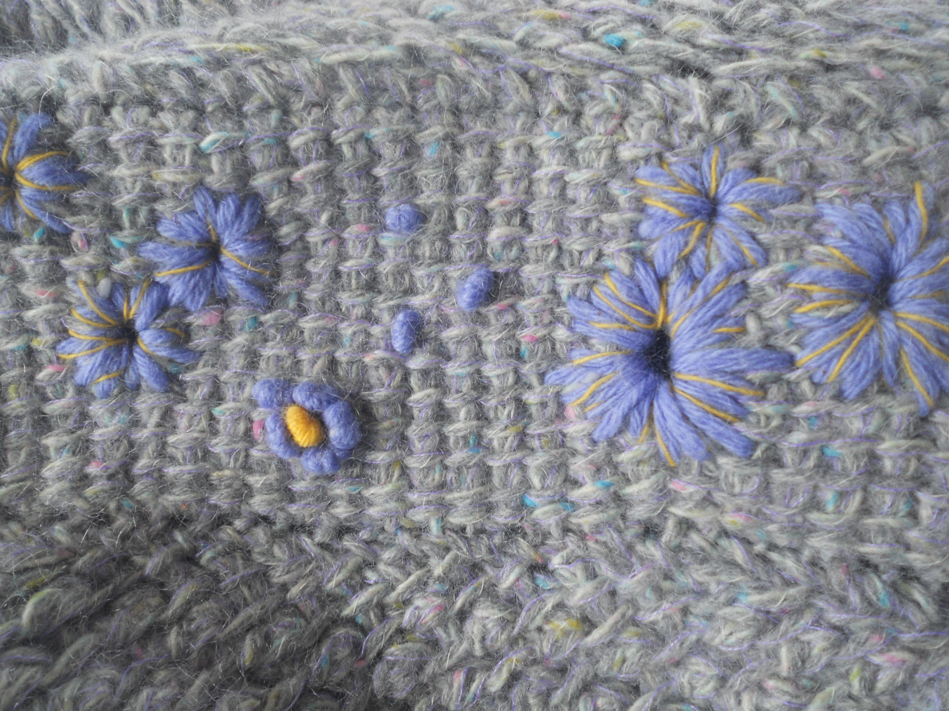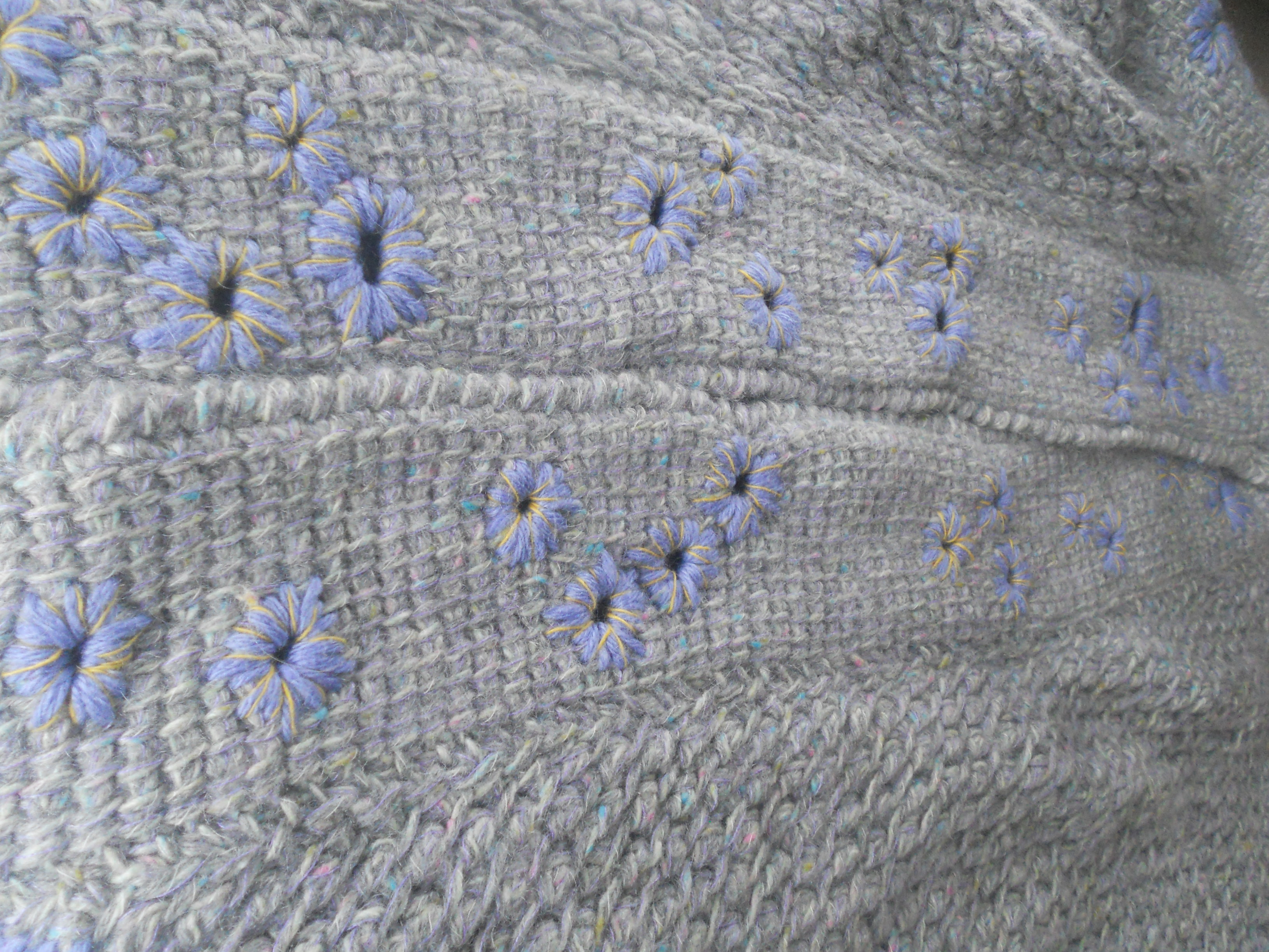 Un tad uznāca vizbulīšu trakums. Vajadzēja vizbulīšu zilu pončo ar visām puķēm. Kā uzlabot drūmi pelēku (un vispār jebko)? Izskraidīju veikalus īpašā kazlēna meklējumos. Viegli tas nebija ne man, ne pārdevējām, kuras trāpījās. Bet nu vienā gudrā dienā ņēmu, kas ir, un tamborēju nost.
